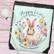 This charming Easter drawstring bag features a delightful Easter bunny surrounded by vibrant spring flowers in a beautiful watercolor style. The greeting "Happy Easter" gracefully arches above the illustration in an elegant script, while your custom text adds a personal touch below. The background color is a fresh light green. Full of seasonal charm, this bag is perfect for carrying your essentials with a festive flair.