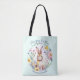 Cute Bunny and Flowers Pretty Happy Easter Tote Bag