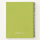 Kawaii illustration of two friends with bunnies on a lined notebook with editable text in the front. You can change the name of the notebook and the lower name text. The back is light green with our logo on.