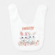 A soft white baby bib featuring two adorable bunnies printed on one sides in a sweet pink theme with a clean white background. Gentle, lovable, and full of heart, it makes a perfect gift for babies, kids, and moms-to-be friends . Customizable with your own special words to create a truly meaningful and memorable keepsake for your little ones.