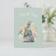Cute watercolor bunny rabbit in a dress surrounded by pastel flowers. Sage green background baby shower thank you note. So simple and sweet. Perfect for your “Thank you” cards for any occasion.