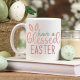 Mug features the words 'Have a Blessed Easter' in muted pastel colors with a pair of bunny ears perched on top.