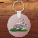 A cute little greyish-brown bunny sitting on a patch of green grass, together with the words "Happy Easter!". The keychain can be personalized: You can change the text, and upload your own image.