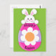 A very sweet little Easter bunny postcard, featuring a cute rabbit peering over a giant pink Easter egg, with the (can be customized to suit) text 'Happy Easter' on the egg.