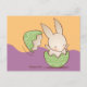 Cute Bunny hatching, Green Easter Egg Postcard
