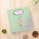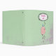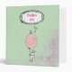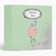 A binder with a whimsical bunny holding a big pink balloon floating up in the air. A little bluebird sits on top of the balloon, whistling a tune with little song notes hanging in the air. Set on a light green background.