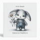 Cute pencil sketch of a bunny holding a daisy. Bunny wears a black and white striped shirt with blue jean overalls. The back has a simple, black chalkboard lines with faux, old charcoal gray/grey leather label on spine trim. Perfect for elementary students, homeschool, or back to school.
