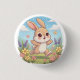 Cute Bunny Hopping in a Flower Field Button