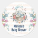 Cute Bunny in Basket & Tulip Florals Baby Shower Classic Round Sticker