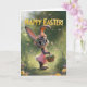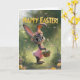 This sweet Easter card features an adorable baby bunny in a pink lace dress, wearing a floral crown and carrying a basket of colorful eggs. Set along a glowing garden path with fluttering butterflies and soft spring flowers, the artwork blends whimsical charm with a polished finish. Perfect for kids, families, and anyone who loves heartwarming, magical Easter designs. Printed on premium cardstock for a beautiful seasonal keepsake.