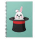 An illustration of a cute white bunny peeping on the black wizard hat with red accent. This adorable white rabbit design is a gift idea for magic lovers, magicians, rabbit lovers, fur mom, fur dad, pet lovers and animal lovers.