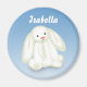 Lovely beautiful cartoon illustration for kids featuring a cute white bunny with floppy big ears on a light blue background. Customize and personalize this product with your desired Name or leave it blank.