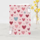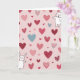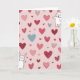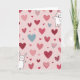 Designed with a soft pink background, this card is covered in a repeating pattern of hearts that feels sweet and cozy. The hearts come in red, rose, and light blue, and they’re mixed with different looks like white polka dots, thin stripes, and simple dotted outlines. In the top right corner, a chubby white bunny peeks in with rosy cheeks, wide eyes, and a big smile, reaching its arms out like it wants a hug. In the bottom left corner, a matching bunny does the same, making the two corners feel connected and friendly. The overall scene looks bright and gentle, with everything spaced out so the pattern stays easy on the eyes. There isn’t any text shown on the card, so the hearts and bunnies do all the talking ❤️. It feels like a light, happy way to say “I care about you,” whether it’s for romance or close friendship 💘. Hope it helps you share your Valentine’s Day sentiments with someone special.