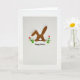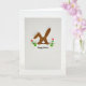 This card features a simple white background with a paper cut-out of a long-eared burrowing animal shown from behind in warm brown, as if it’s leaning over a crisp white horizontal band. The pose feels friendly and a little flirty, like it’s peeking back to share a private joke with the viewer 🐰. Soft, even lighting creates gentle shadows along the cut edges, giving the layers a subtle depth without looking busy. On both sides of the animal, bright green grass tufts rise up, each topped with a small red flower shaped like a star, adding a spring garden touch 🌷. A small white tail sits near the center of the brown shape, standing out with a neat, textured contrast. Below the white band, a short greeting is centered near the bottom in a dark ink, written in flowing cursive-style lettering. The red flowers sit just above the band on each side while the green blades angle slightly outward from the animal.