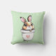 Cute Bunny Plant Pot on Light Lime Green Throw Pillow