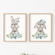 Add the finishing touches to your baby's nursery or child's bedroom with these gorgeous art prints! Design features bunnies, blue watercolor flowers and greenery.