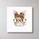 Cute Bunny Rabbit Face Leopard Coquette Bow Glasse Canvas Print