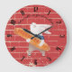 Cute bunny rabbit getting a whiff of fresh baked bread on this kitchen clock with faux brick background, and personalized with your name or text.
