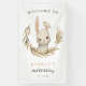 Cute and rustic bunny theme kid's birthday party welcome banner featuring watercolor illustration of a rabbit with pink floral and green foliage wreath. Perfect for your woodland theme girl's party in the spring.