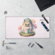 Desk mat with an adorable image with a round shaped bunny standing outside it's egg-shaped house. Pastel colors and cherry trees give it a Japanese kawaii vibe.