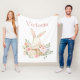 Adorable personalized watercolor bunny in a basket fleece blanket, Any âge would love this snuggly bunny blanket. Pinks with blush and white flowers mixed with eucalyptus and mixed greens. So sweet. A great gift for birthdays or Christmas.