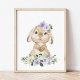 Cute Bunny, Rabbit, Purple Flowers, Gender Neutral Poster