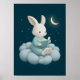 Cute Bunny Reading on Cloud Nursery Bedtime Poster