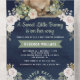 Cute Bunny Sage Green Floral Navy Blue Baby Shower All In One Invitation