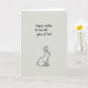 This card features a simple bunny drawn with thin black lines on a smooth grey background 🐰. The rabbit sits near the lower center in side profile, with long upright ears, a single dot eye, and a small rounded tail that gives it a gentle, approachable look. Above the bunny, a short message is stacked in several lines, arranged like a casual note that feels a bit flirty, as if shared between close friends. The lettering is black and slightly uneven in a natural way, making it seem like someone wrote it quickly with a grin. The open space between the words and the bunny creates a quiet pause, like the bunny is listening in on the teasing line above. With only grey and black on the page, the design keeps attention on the tender contrast between the innocent little animal and the cheeky compliment 🌷. The bunny’s ears point upward beneath the centered text, and the rest of the background stays an even, unbroken grey.