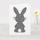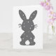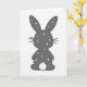 This card features a single bunny silhouette centered on a wide white background, keeping the scene simple and airy 🐇. The bunny is shown from behind with long, slender ears and a rounded body in dark gray, giving it a calm, shy presence. Small white polka dots scatter across its back like gentle confetti, adding a soft, friendly touch that feels a bit like a quiet wink between close friends 🐰. A tiny white puff tail sits low on the body, creating a sweet contrast that draws your eye. Thin whiskers extend from the head, hinting that the bunny may be turning slightly as if listening for someone nearby. There is no visible message text, leaving plenty of open space where a greeting could be added above or below the figure in a light gray tone. The only bright accents are the white dots and the fluffy tail against the dark gray form.