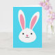 This design shows a stylized white bunny head centered on a solid cyan background, with a friendly, forward-facing gaze that feels like a sweet hello 🐰. The round face is kept simple and smooth, letting the bunny’s open expression carry a gentle, affectionate tone, like it’s looking at someone it trusts. Two long ears stretch upward, each with a soft pink inner area that adds warmth against the cool blue field. The eyes are two neat black circles, set evenly to create a calm, welcoming look, and a tiny pink triangle nose sits just above a curved smile. The flat, graphic style avoids shading and texture, giving it a crisp icon-like appearance that reads clearly from a distance. A small tuft of white, spiky fur peeks between the ears, adding a touch of charm without cluttering the design 🌷. There’s no additional text, border, or extra imagery—just the white bunny shape standing out against the uninterrupted cyan backdrop with pink details in the ears and nose.