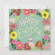 Celebrate the joy of spring with this charming Happy Easter greeting card featuring a sweet bunny surrounded by a vibrant garden of colorful flowers. The playful hand-painted style and cheerful palette of pinks, reds, yellows, and greens create a warm and whimsical design that perfectly captures the spirit of the Easter season.