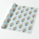 Celebrate your child's first birthday with this cute bunny birthday gift wrap. The design features a bunny holding a pile of birthday presents. The background is a subtle light blue pattern.