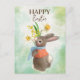 Cute bunny with flowers happy Easter Postcard