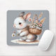 Cute Bunny with Flowers Watercolor Art Mouse Pad