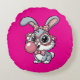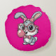 Cute Bunny with Glasses Blowing Bubble Gum Round Pillow
