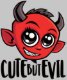 Vector cartoon illustration of a devilishly cute little devil with big eyes with Cute But Evil text. Keywords: devil, hell, cute, demon, evil, satan, halloween, monster, horns, horror, adorable, sweet, devilishly, devilish, precious, endearing, lovable, lovely, appealing, engaging, delightful, dear, darling, winning, winsome, charming, enchanting, attractive, pretty, adorbs