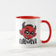 Vector cartoon illustration of a devilishly cute little devil with big eyes with Cute But Evil text. Keywords: devil, hell, cute, demon, evil, satan, halloween, monster, horns, horror, adorable, sweet, devilishly, devilish, precious, endearing, lovable, lovely, appealing, engaging, delightful, dear, darling, winning, winsome, charming, enchanting, attractive, pretty, adorbs