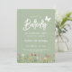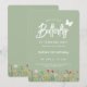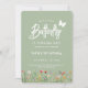 This "Our Little Butterfly" First Birthday Invitation features a delightful arrangement of beautiful wildflowers paired with an elegant script against a sage green background and a cute little butterfly that adds a touch of whimsy and charm, making it an ideal choice for celebrating a baby girl's 1st. birthday.