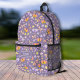 Super fun, cute backpack featuring a butterfly floral print and your child's name. Add and extra bonus line of text - phone number, team name, saying, etc. - or delete. Roomy enough for books, computer, sports gear and more - or use as a travel or sleepover bag too. Stylish and colorful, yet very functional - win, win.