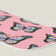 A pattern of beautiful butterflies is on a pink background. The butterflies have a combination of colors: pink, purple, and green.