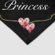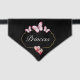This adorable pet bandana for a dog or a cat features a simple black background with a gold frame that has pretty pink and white butterflies at the top. On the bottom there are two unique watercolor hearts. You can personalize your dog's name on the front.