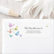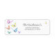 Butterfly return address labels featuring a plain white background that can be changed to any color, cute pastel rainbow colored butterflies, your name, and address.