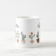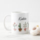 Start your day with this cute mug with hand-drawn cactus and flowers in a pot. Personalize it with your name.