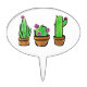 Three cute cacti with pink flowers in little terra cotta pots- a fun south western design!