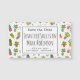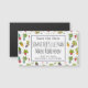 A wedding save the date magnet with a cute and fun pattern. Illustrations of different cactus, sitting in flower pots with cartoony happy smiling faces. A white rectangle with a blue inner border layered over top with your personalized details inside.