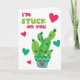 Cute Cactus Stuck on You Kids Valentine Card