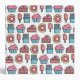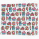 Cute desserts pattern with donuts, slices of cake, cupcakes, ice lollies and chocolate bars.