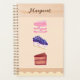 This cute personalized cake and cafe themed planner has my original digitally drawn illustrations of three cakes. There is a woodgrain pattern at the top and bottom borders. Add a name or text to the planner using the "Personalize this design" button.