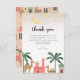 Make your baby shower memorable with this unique and very special desert theme baby shower thank you card. The design features cute camel amidst oasis and palm trees. Its pastel palette perfectly complements the theme. Explore more matching items in my shop.